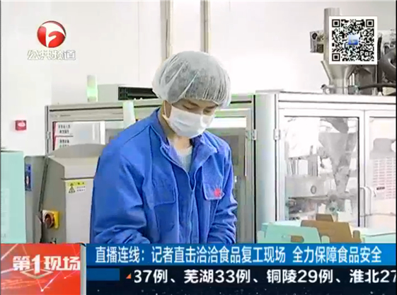 2月21日午間,安徽衛(wèi)視公共頻道《第一在線》欄目直播連線。記者深入一線車間,直擊洽洽食品復(fù)工現(xiàn)場(chǎng)。洽洽做好疫情防護(hù),全力保障食品安全!